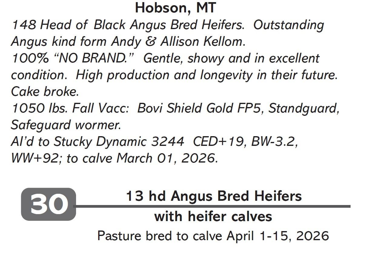 148 Head of Black Angus Bred Heifers. Outstanding Angus kind form Andy & Allison Kellom.