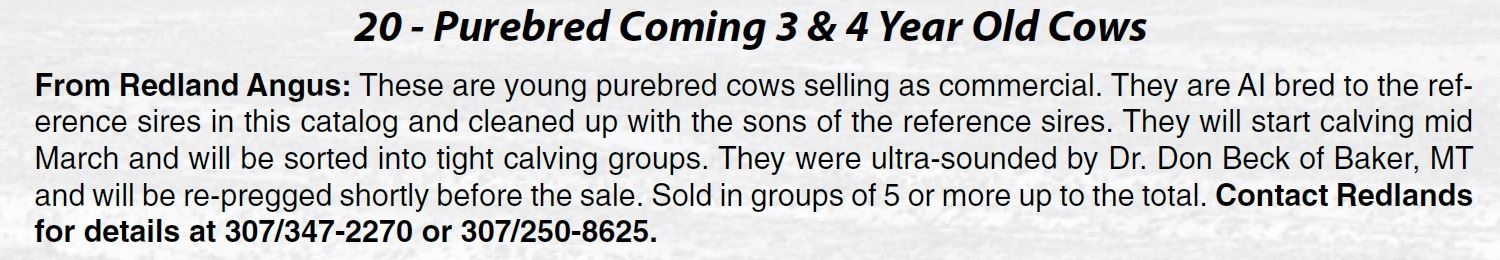 All bulls selling for $2,500 or more will be covered 50% by Redland Angus if they are injured during their first breeding season.