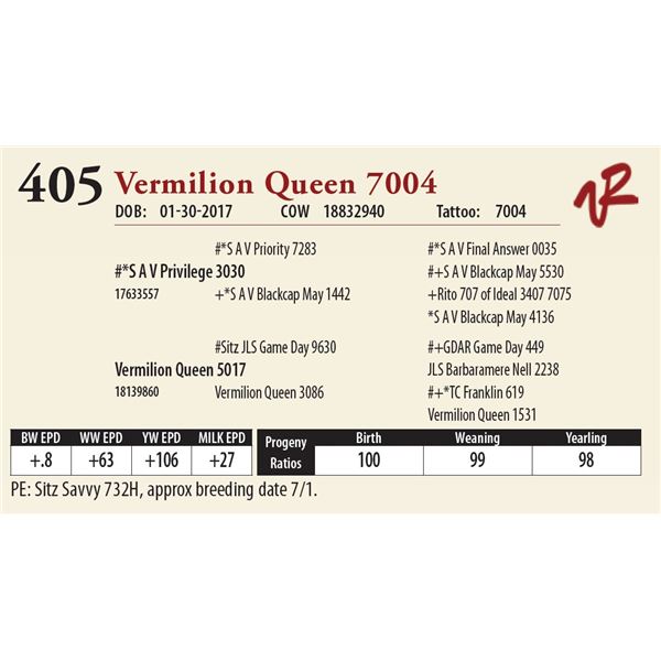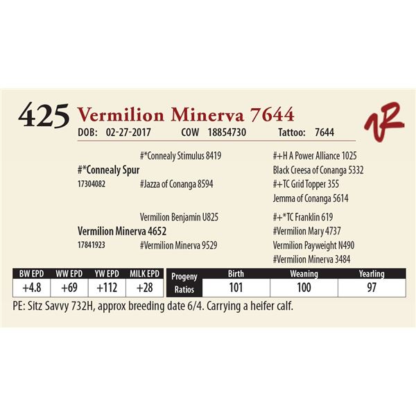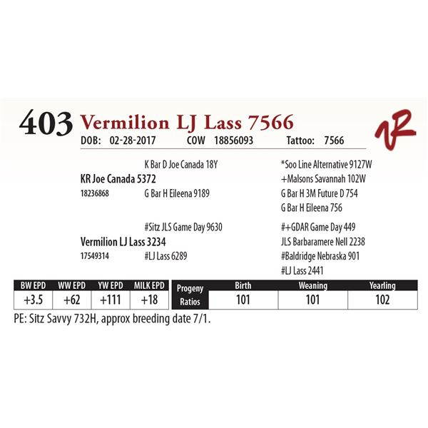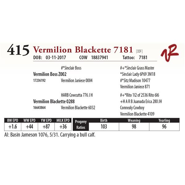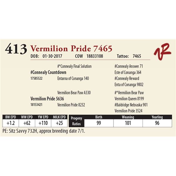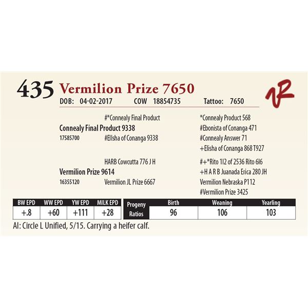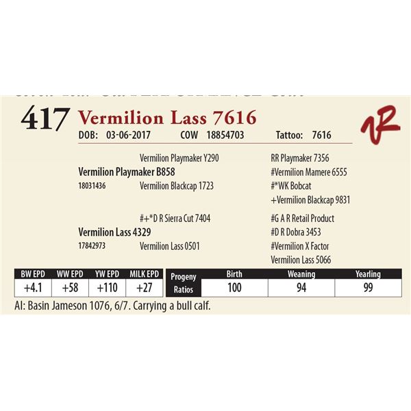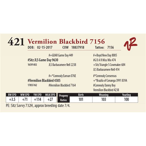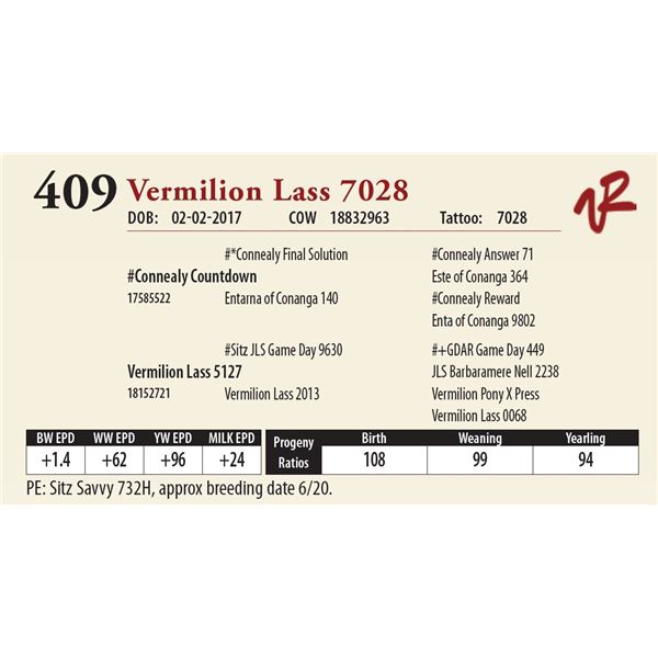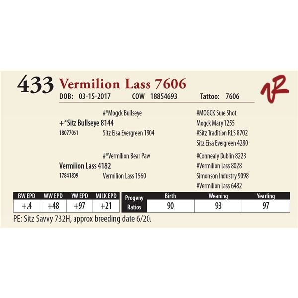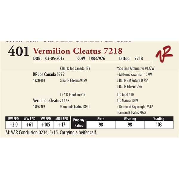 All bulls will be covered 50% by Vermilion Ranch if they are injured during their first breeding season. Breeding season is defined as the 60-day period following the first turnout of bulls.