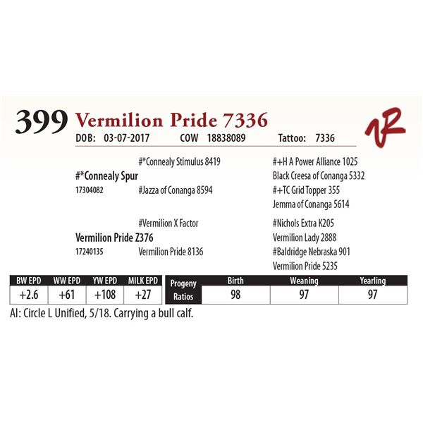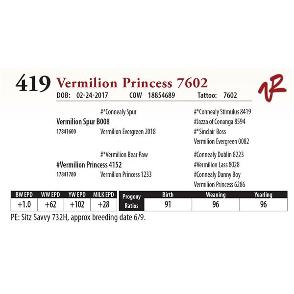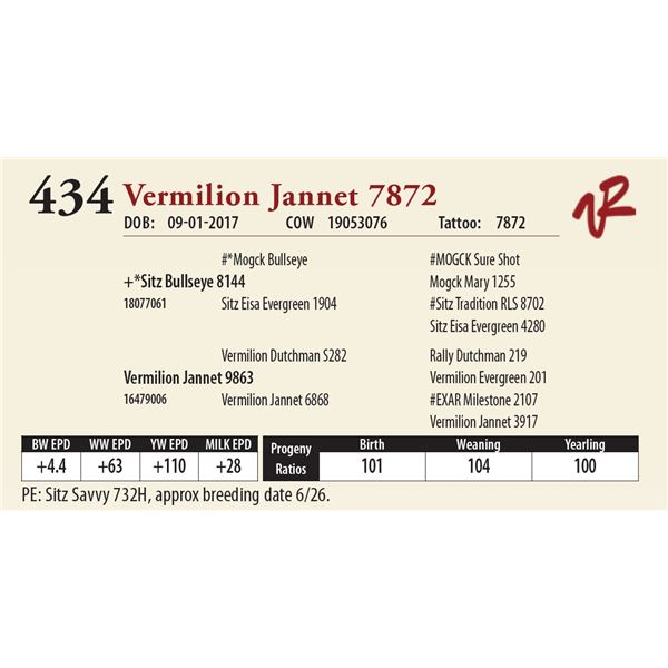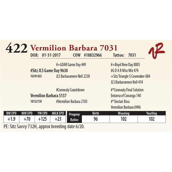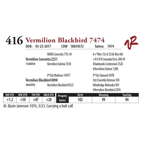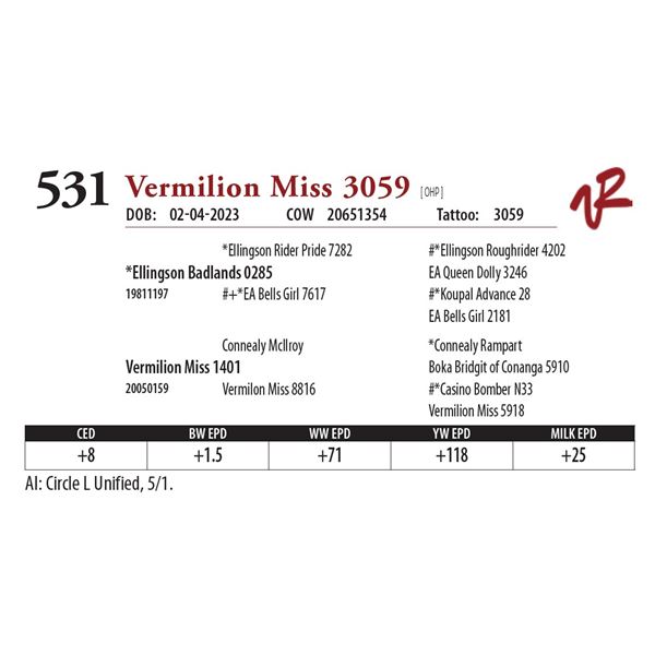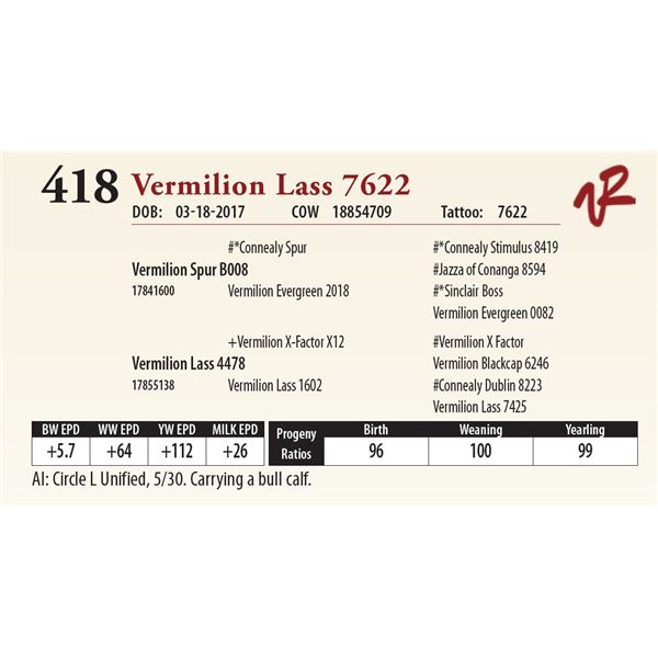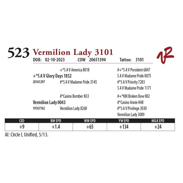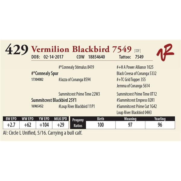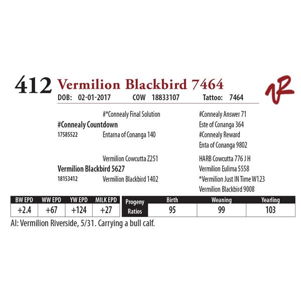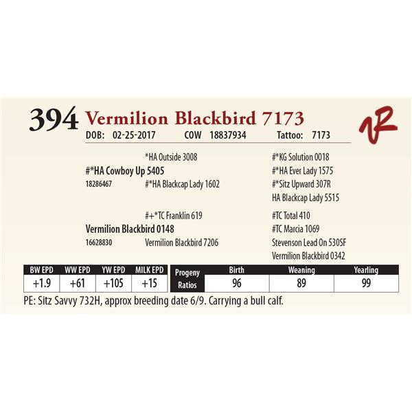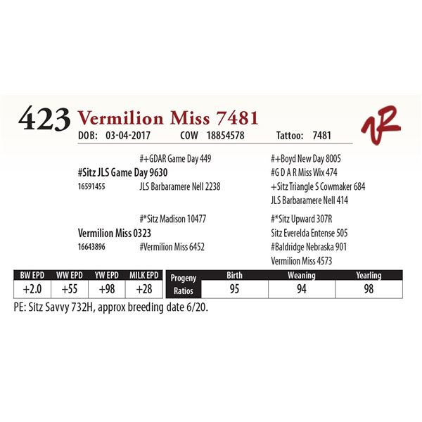 All bulls will be covered 50% by Vermilion Ranch if they are injured during their first breeding season. Breeding season is defined as the 60-day period following the first turnout of bulls.