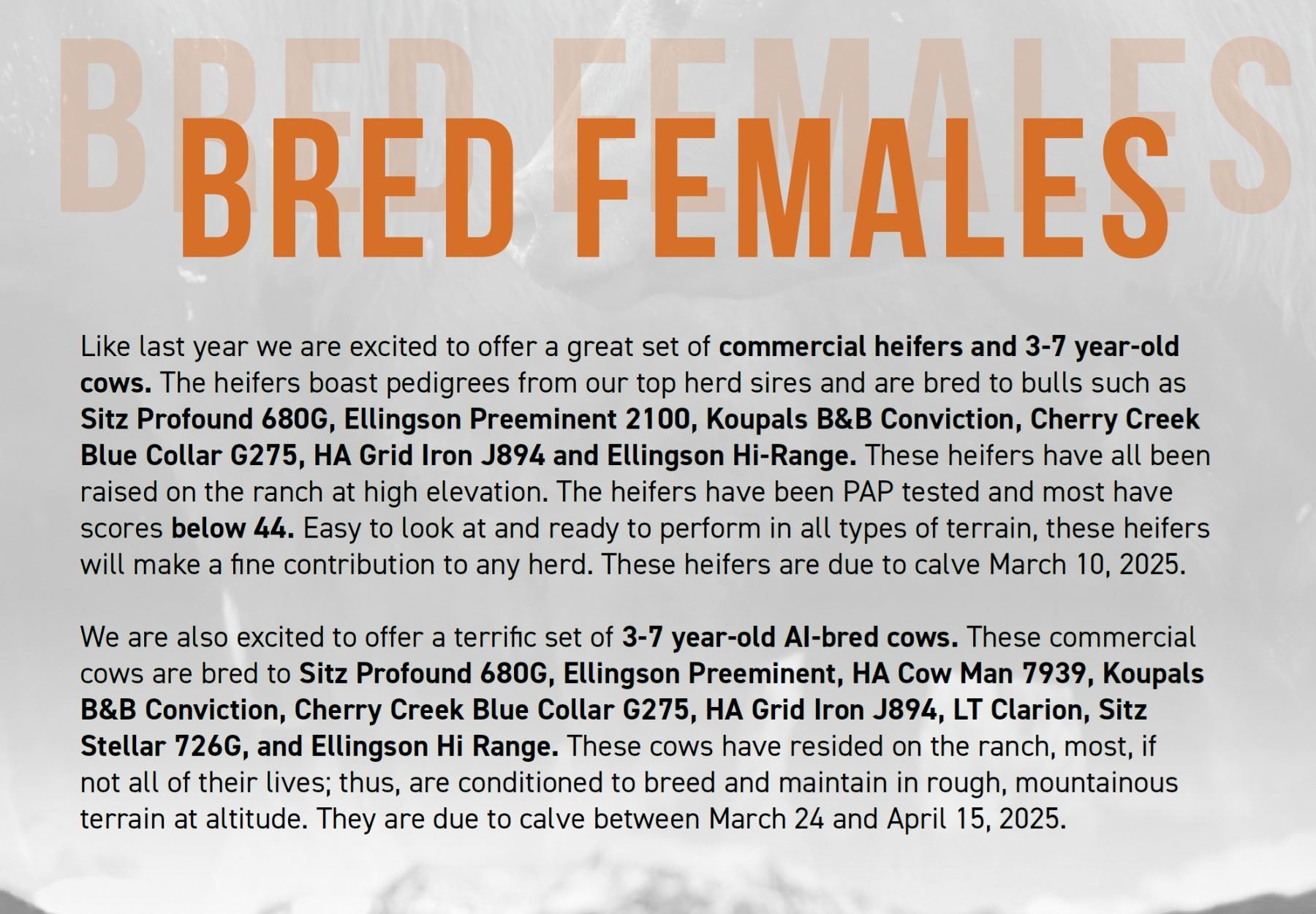 Stellar 726G, and Ellingson Hi Range. These cows have resided on the ranch, most, if