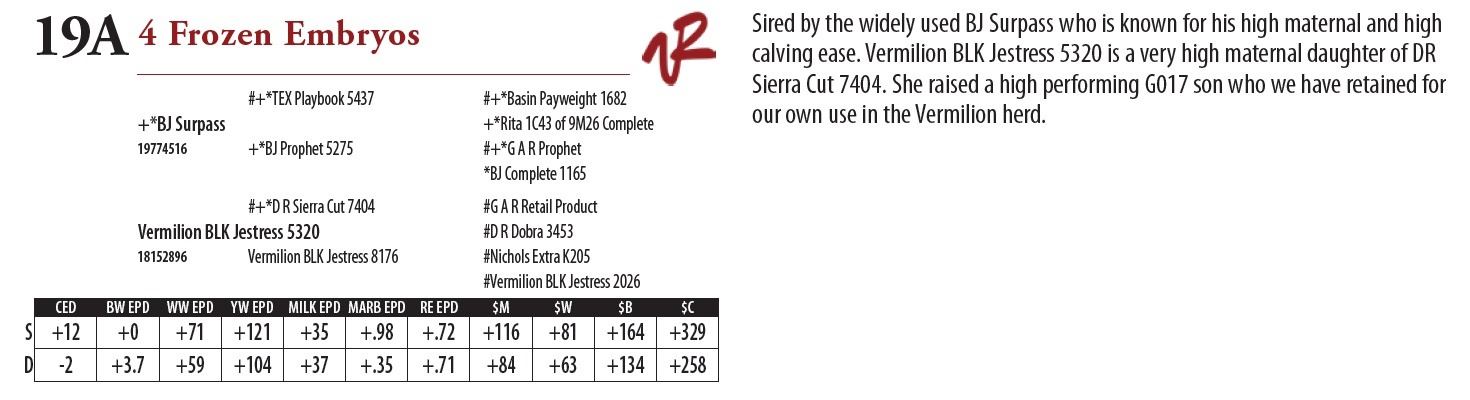 calving ease. Vermilion BLK Jestress 5320 is a very high maternal daughter of DR