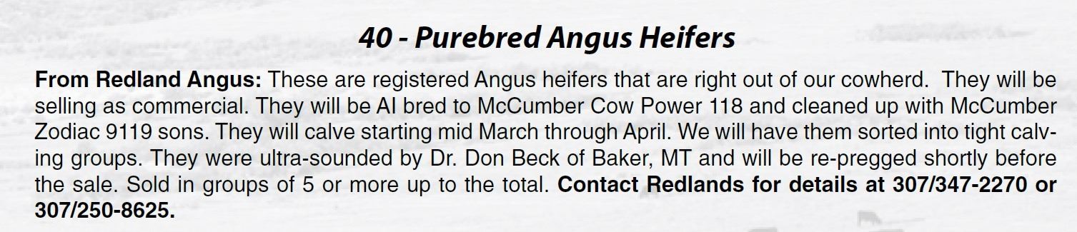 All bulls selling for $2,500 or more will be covered 50% by Redland Angus if they are injured during their first breeding season.