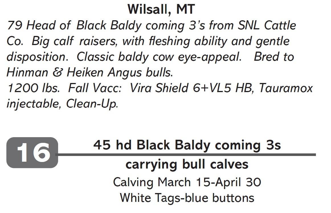 79 Head of Black Baldy coming 3’s from SNL Cattle Co. Big calf raisers, with fleshing ability and gentle disposition. Classic baldy cow eye-appeal. Bred to Hinman & Heiken Angus bulls.