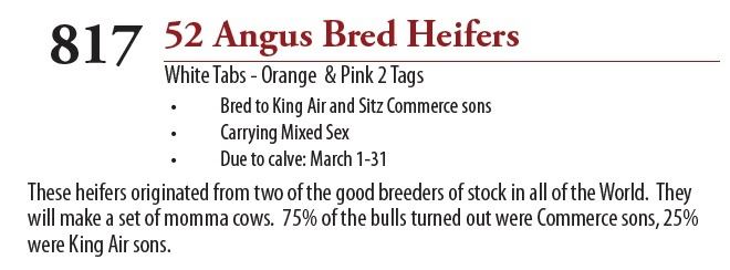 Free delivery on bulls to central stockyard points in Montana and adjoining states. $75 discount per bull that is picked up at the sale. All females will be delivered at cost.