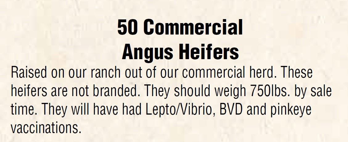 All persons who attend this sale do so at their own risk, legal or otherwise. Ranch assumes no liability for property loss or accident that may occur.