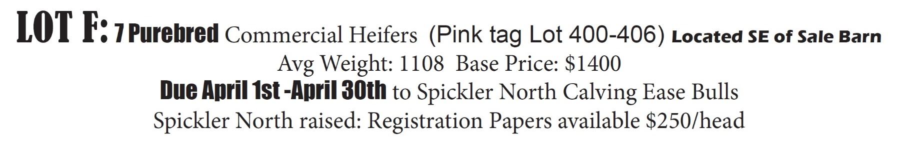 LOT F: 7 Purebred Commercial Heifers (Pink tag Lot 400-406) Located SE of Sale Barn