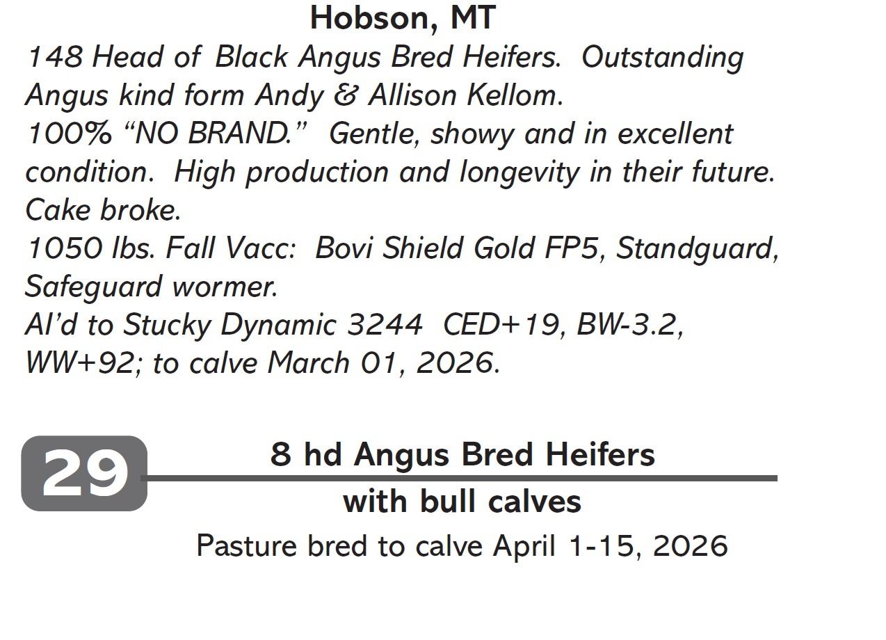 148 Head of Black Angus Bred Heifers. Outstanding Angus kind form Andy & Allison Kellom.