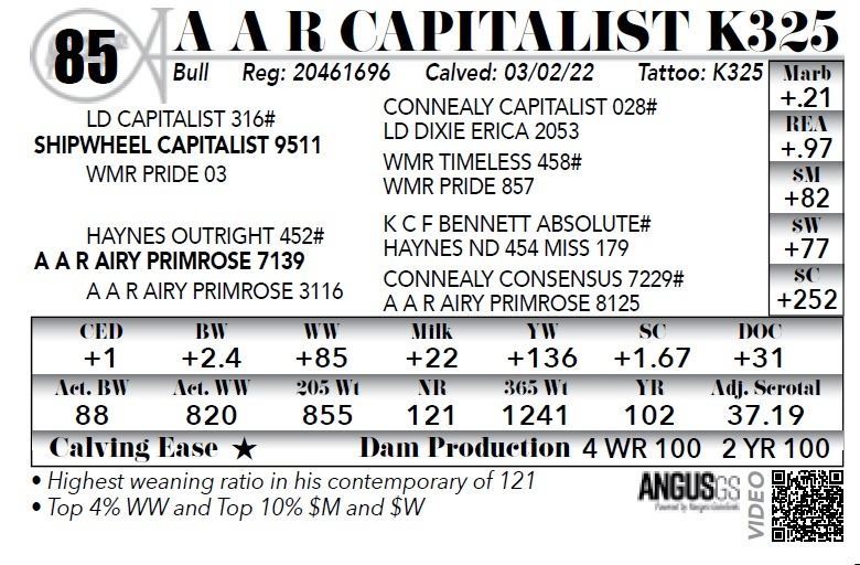 **Highest weaning ratio in his contemperary of 121 *Top 4% WW and Top 10% $M and $W