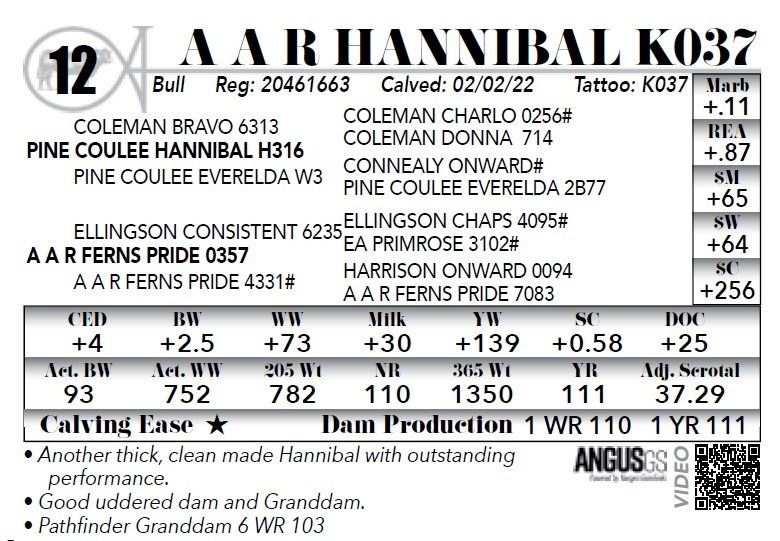**Another thick, clean made Hannible with outstanding performance. *Good uddered dam and granddam. Pathfinder granddam 6 WR 103