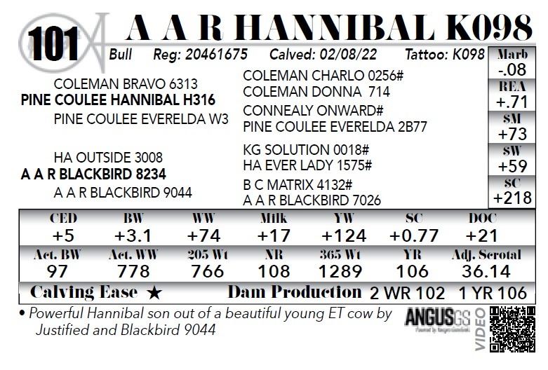 **Powerful Hannibal son out of a beautiful young ET cow by Justified and Blackbird 9044