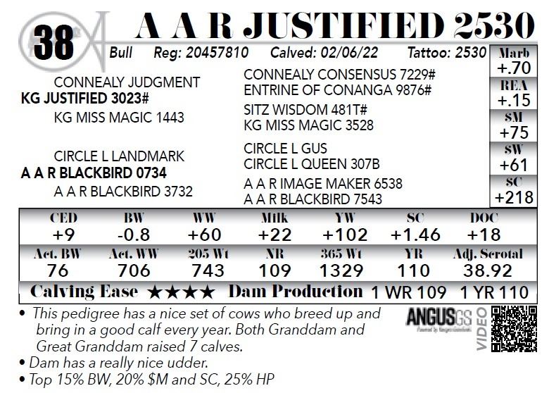 ** This pedigree has a nice set of cows who breed up and bring in a good calf every year. Both Granddam and Great Granddam raised 7 calves. *Dam has a really nice udder. *Top 15% BW, 20% $M and SC, 25% HP