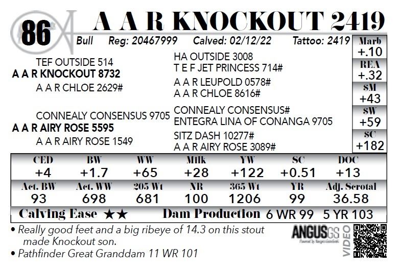**Really good feet and a big ribeye of 14.3 on this stout made Knockout son. *Pathfinder Great Granddam 11 WR 101