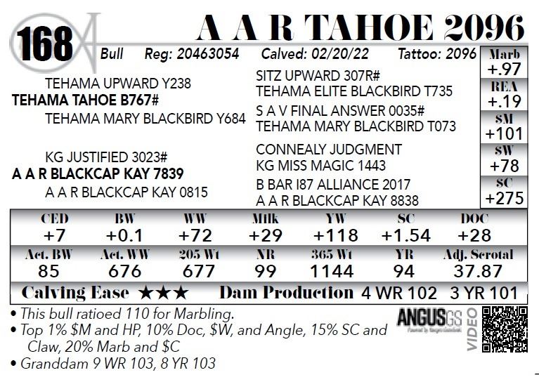 **This bull ratioed 110 for Marbling. *Top 1% $M and HP, 10% Doc, $W, and Angle, 15% SC and Claw, 20% Marb and $C *Granddam 9 WR 103, 8 YR 103