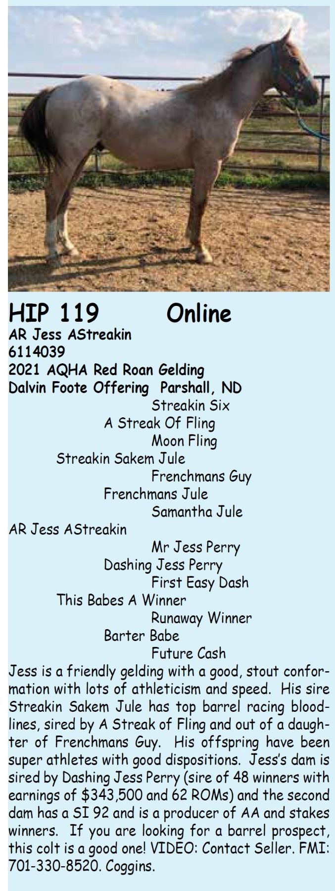 4. Horses are offered for sale according to the laws of the State of Montana, and the right to bid is reserved for all sellers in this sale.