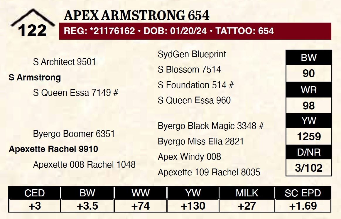 All persons who attend this sale do so at their own risk, legal or otherwise. Apex Angus assumes no liability for property loss or accident that may occur.