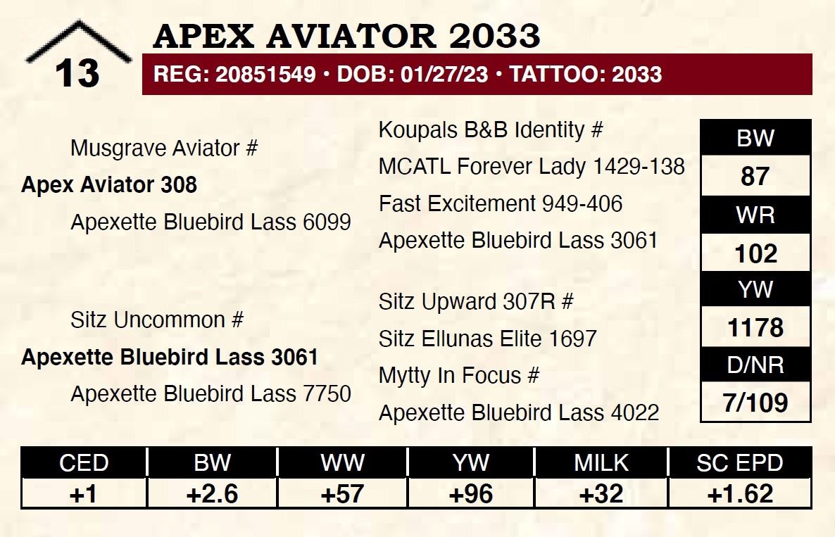All persons who attend this sale do so at their own risk, legal or otherwise. Apex Angus assumes no liability for property loss or accident that may occur.