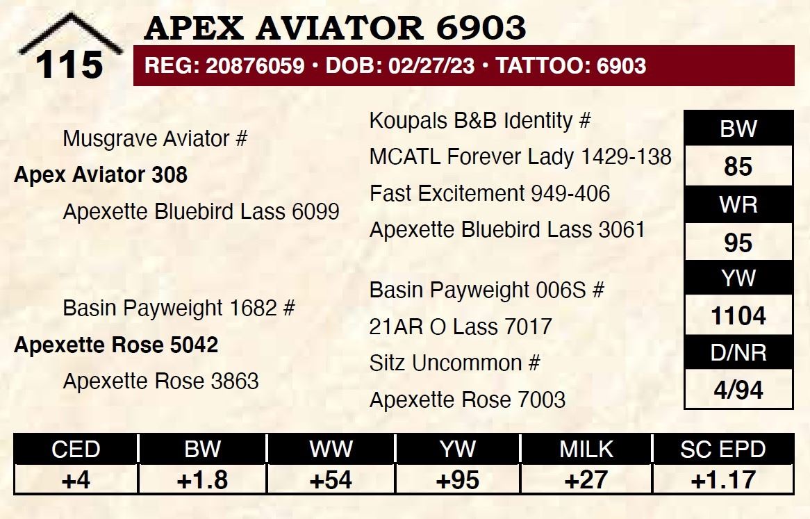 All persons who attend this sale do so at their own risk, legal or otherwise. Apex Angus assumes no liability for property loss or accident that may occur.