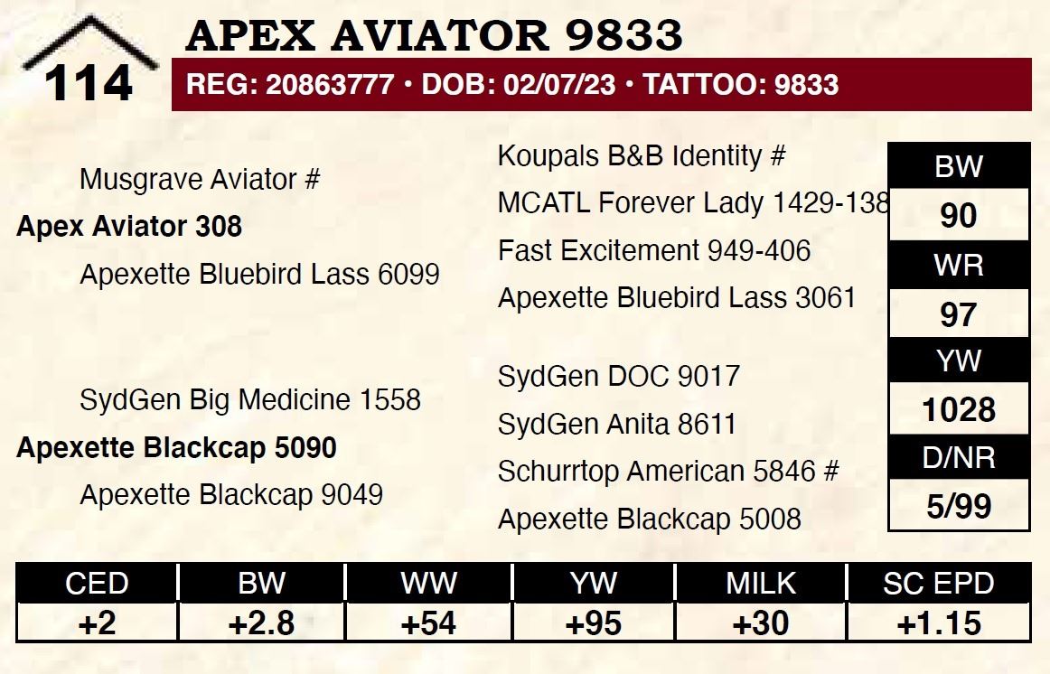 All persons who attend this sale do so at their own risk, legal or otherwise. Apex Angus assumes no liability for property loss or accident that may occur.