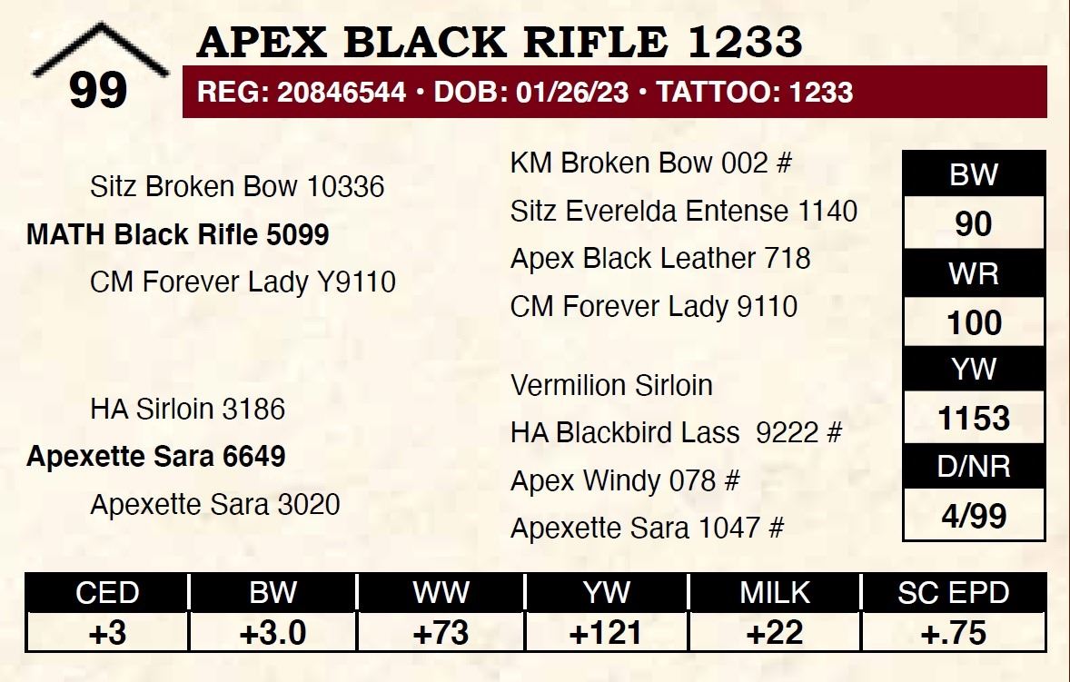 All persons who attend this sale do so at their own risk, legal or otherwise. Apex Angus assumes no liability for property loss or accident that may occur.