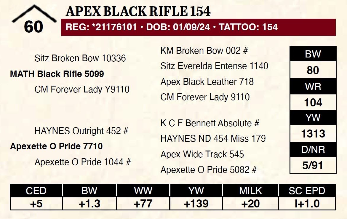 All persons who attend this sale do so at their own risk, legal or otherwise. Apex Angus assumes no liability for property loss or accident that may occur.
