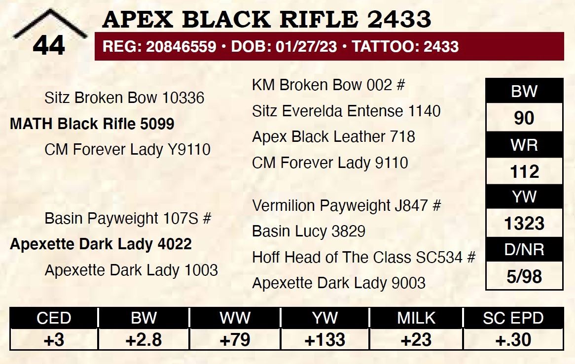 All persons who attend this sale do so at their own risk, legal or otherwise. Apex Angus assumes no liability for property loss or accident that may occur.