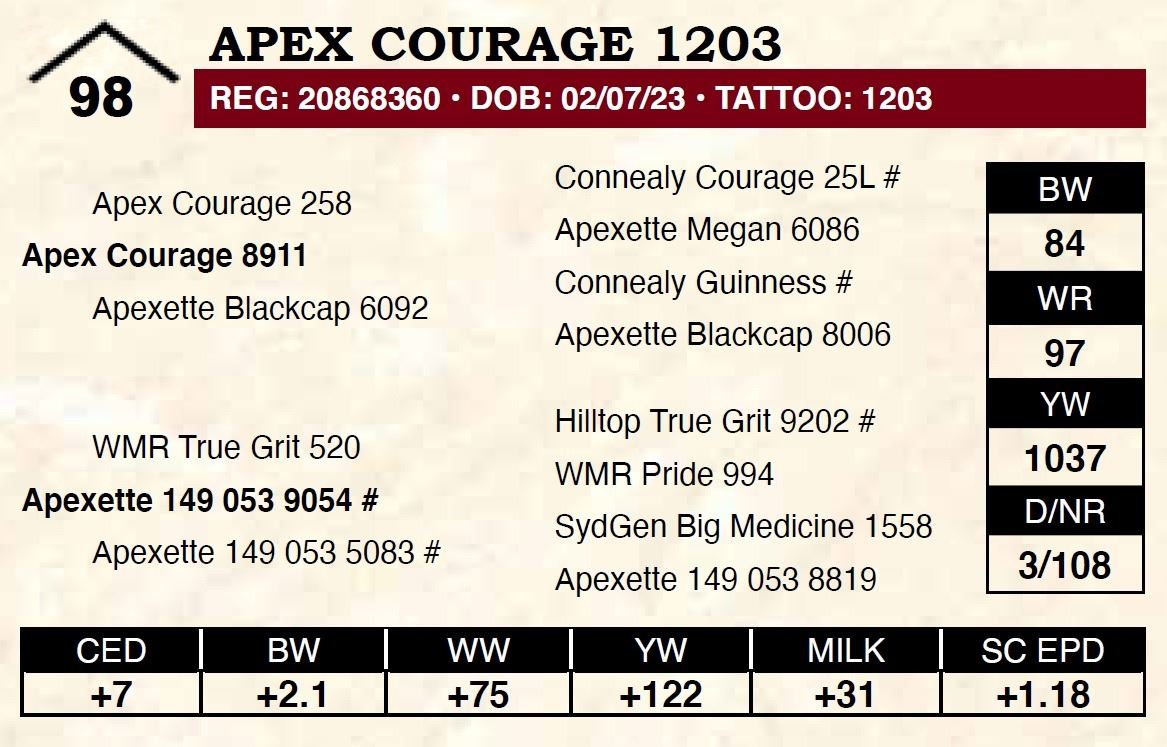 All persons who attend this sale do so at their own risk, legal or otherwise. Apex Angus assumes no liability for property loss or accident that may occur.