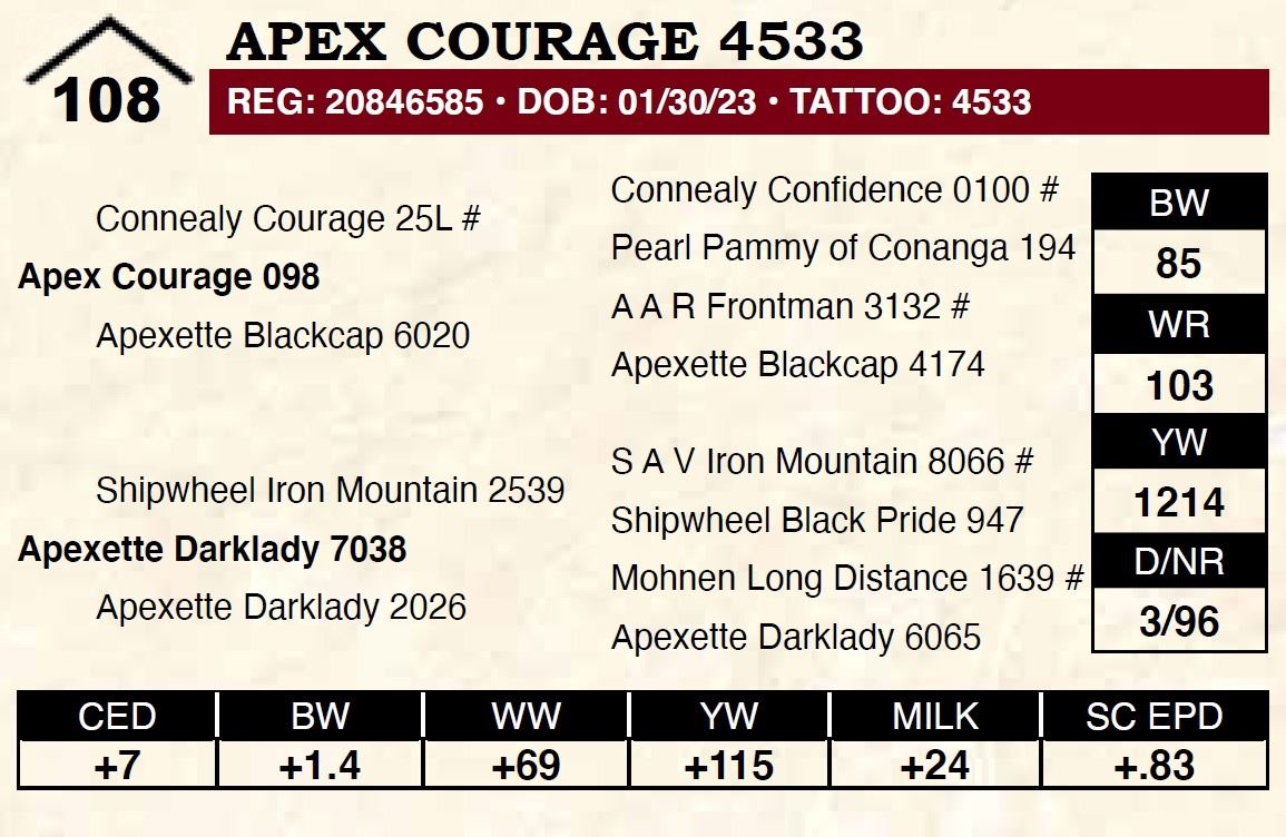 All persons who attend this sale do so at their own risk, legal or otherwise. Apex Angus assumes no liability for property loss or accident that may occur.