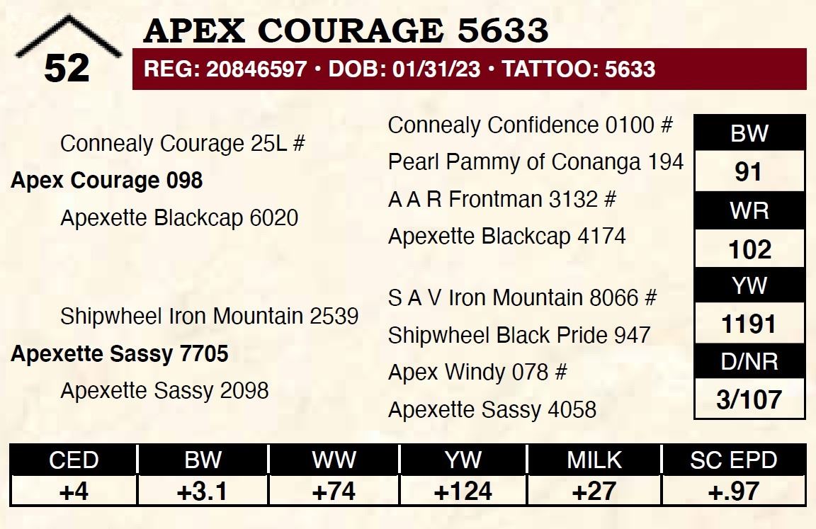 All persons who attend this sale do so at their own risk, legal or otherwise. Apex Angus assumes no liability for property loss or accident that may occur.
