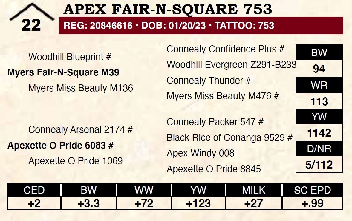 All persons who attend this sale do so at their own risk, legal or otherwise. Apex Angus assumes no liability for property loss or accident that may occur.