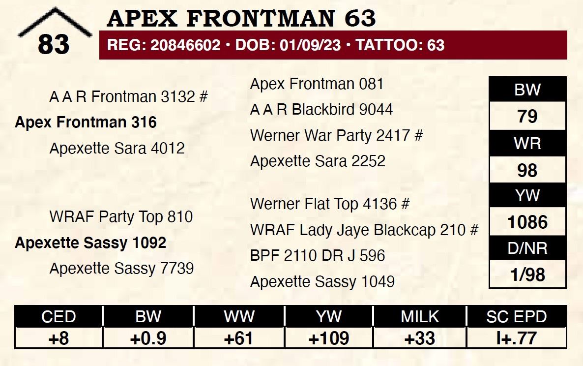 All persons who attend this sale do so at their own risk, legal or otherwise. Apex Angus assumes no liability for property loss or accident that may occur.
