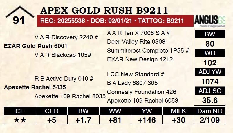 made at cost. Apex Angus will feed and care for bulls until April 1, 2022.