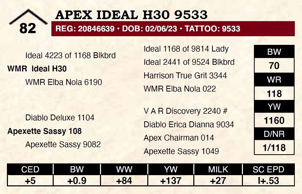 All persons who attend this sale do so at their own risk, legal or otherwise. Apex Angus assumes no liability for property loss or accident that may occur.