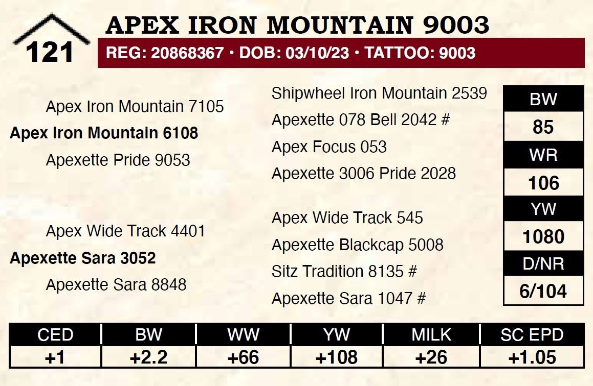 All persons who attend this sale do so at their own risk, legal or otherwise. Apex Angus assumes no liability for property loss or accident that may occur.