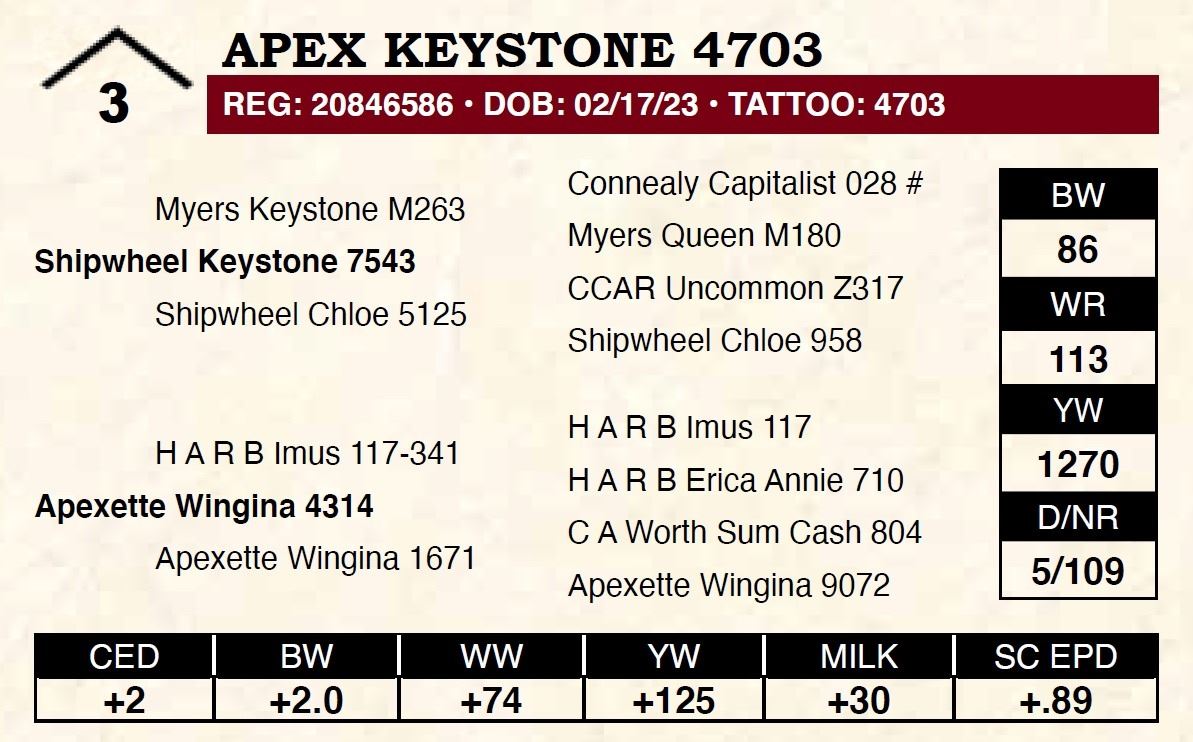 All persons who attend this sale do so at their own risk, legal or otherwise. Apex Angus assumes no liability for property loss or accident that may occur.
