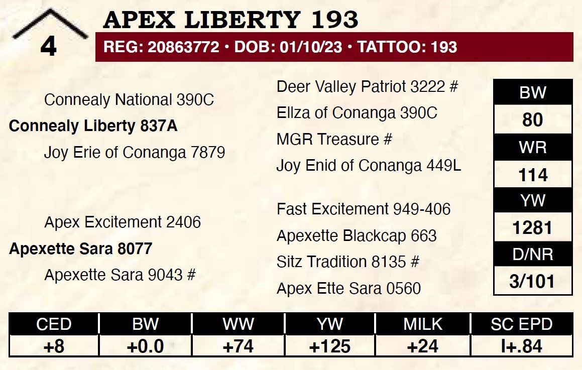 All persons who attend this sale do so at their own risk, legal or otherwise. Apex Angus assumes no liability for property loss or accident that may occur.