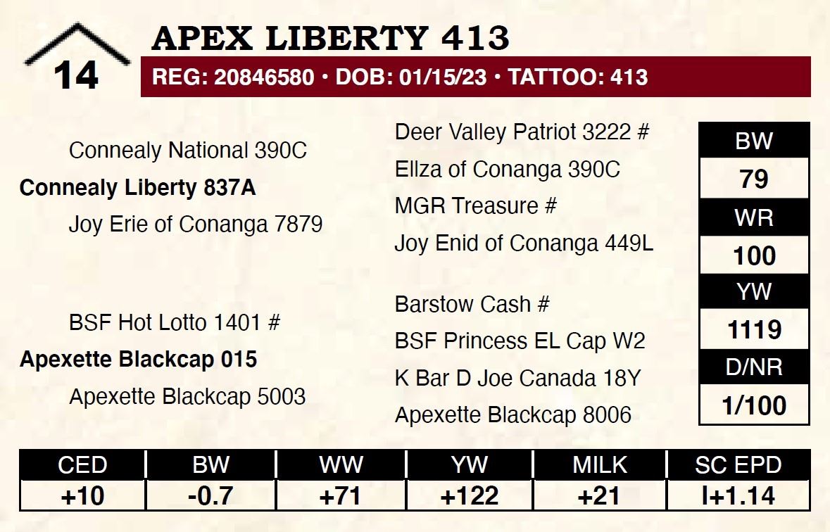 All persons who attend this sale do so at their own risk, legal or otherwise. Apex Angus assumes no liability for property loss or accident that may occur.