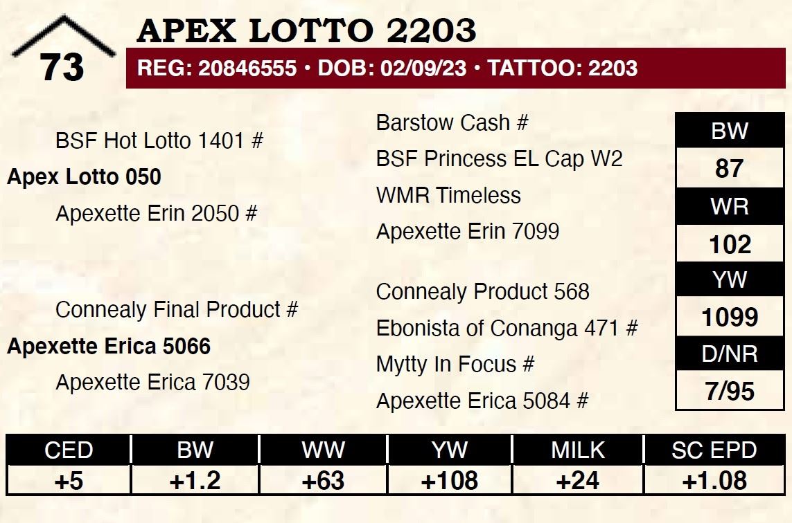 All persons who attend this sale do so at their own risk, legal or otherwise. Apex Angus assumes no liability for property loss or accident that may occur.