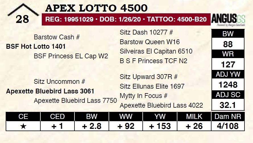 All persons who attend this sale do so at their own risk, legal or otherwise. Apex Angus assumes no liability for property loss or accident that may occur.