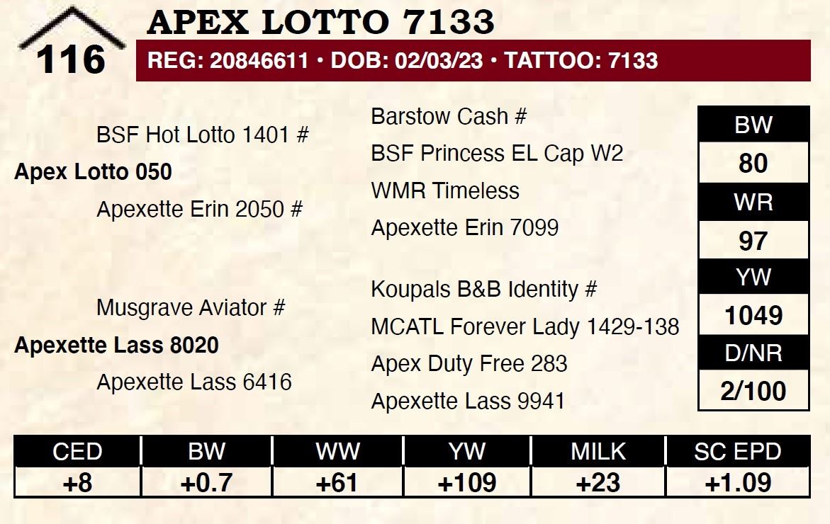 All persons who attend this sale do so at their own risk, legal or otherwise. Apex Angus assumes no liability for property loss or accident that may occur.