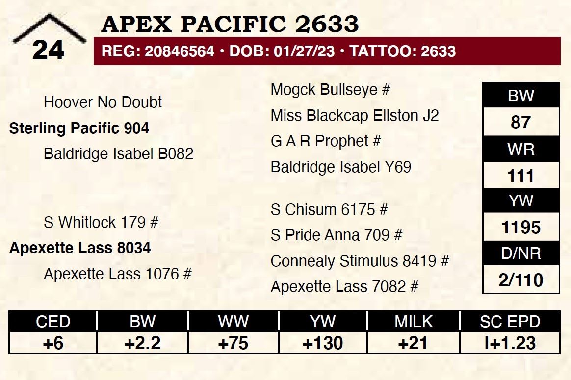 All persons who attend this sale do so at their own risk, legal or otherwise. Apex Angus assumes no liability for property loss or accident that may occur.