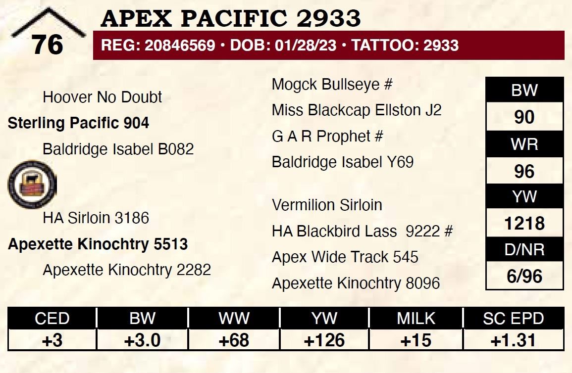 All persons who attend this sale do so at their own risk, legal or otherwise. Apex Angus assumes no liability for property loss or accident that may occur.