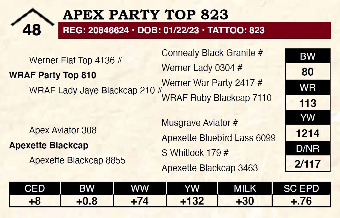 All persons who attend this sale do so at their own risk, legal or otherwise. Apex Angus assumes no liability for property loss or accident that may occur.