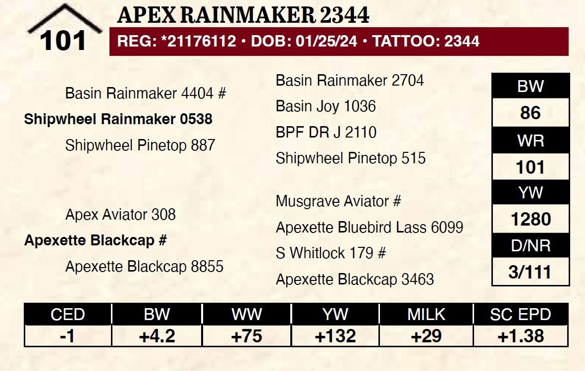 All persons who attend this sale do so at their own risk, legal or otherwise. Apex Angus assumes no liability for property loss or accident that may occur.