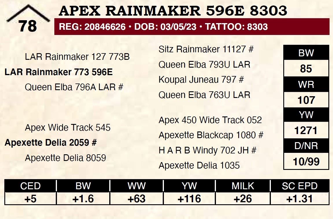 All persons who attend this sale do so at their own risk, legal or otherwise. Apex Angus assumes no liability for property loss or accident that may occur.