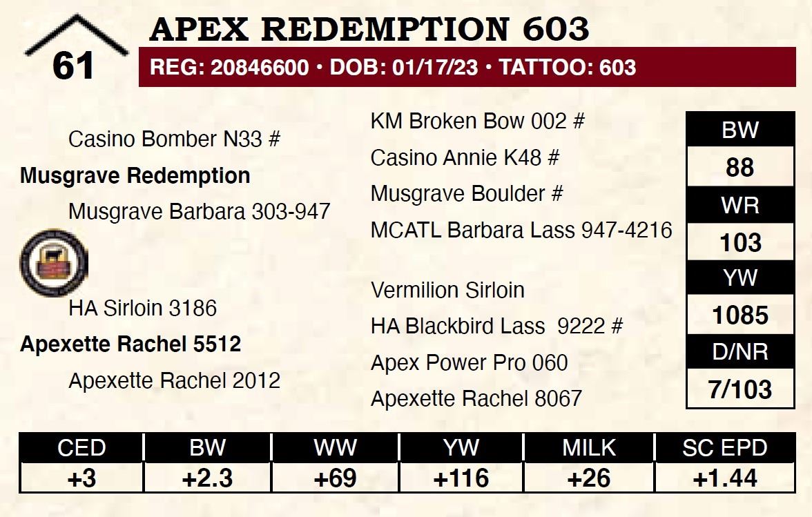 All persons who attend this sale do so at their own risk, legal or otherwise. Apex Angus assumes no liability for property loss or accident that may occur.