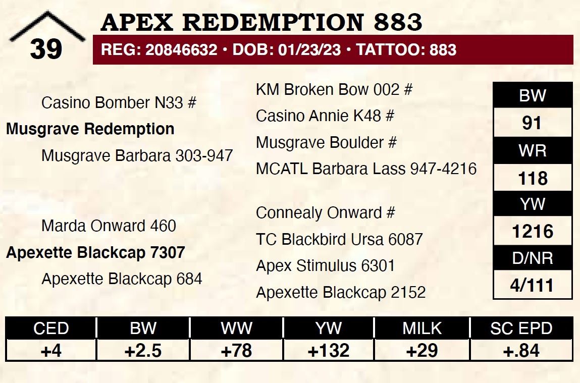 All persons who attend this sale do so at their own risk, legal or otherwise. Apex Angus assumes no liability for property loss or accident that may occur.