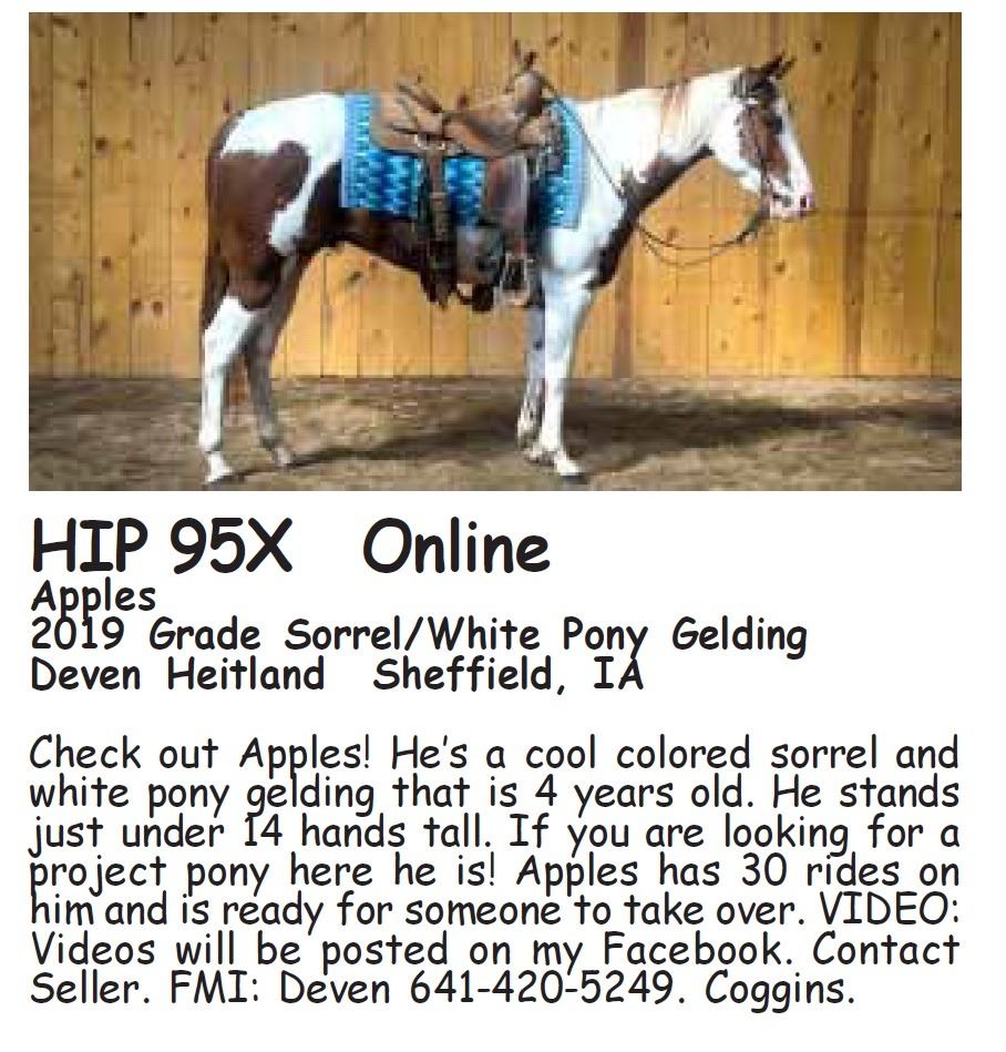 FRIDAY: OCTOBER 27 – HORSEPALACE ARENA Exit 437 on I-90 3 p.m. Indoor Performance Preview of Sale Horses! Barrels, Poles, Cutting, Saddle/Ride/Reiners, Rope Horses