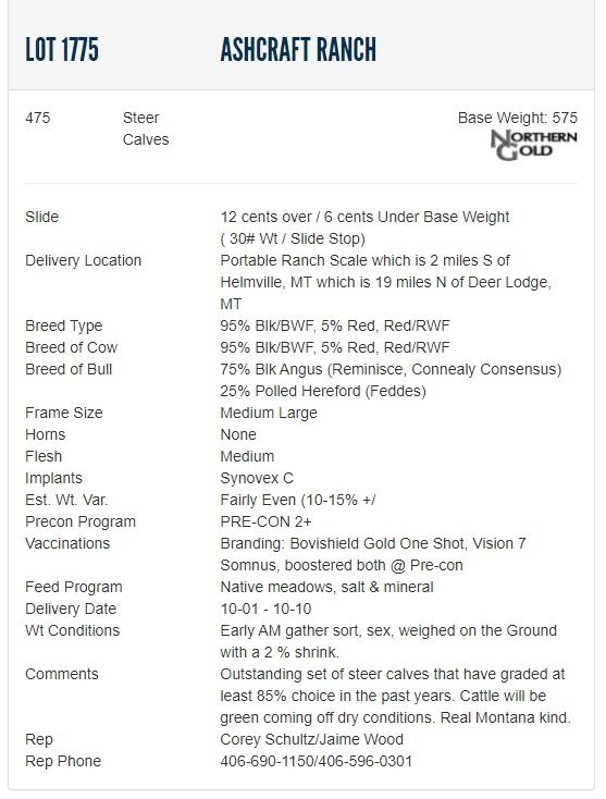 Comments Outstanding set of steer calves that have graded at least 85% choice in the past years. Cattle will be green coming off dry conditions. Real Montana kind.