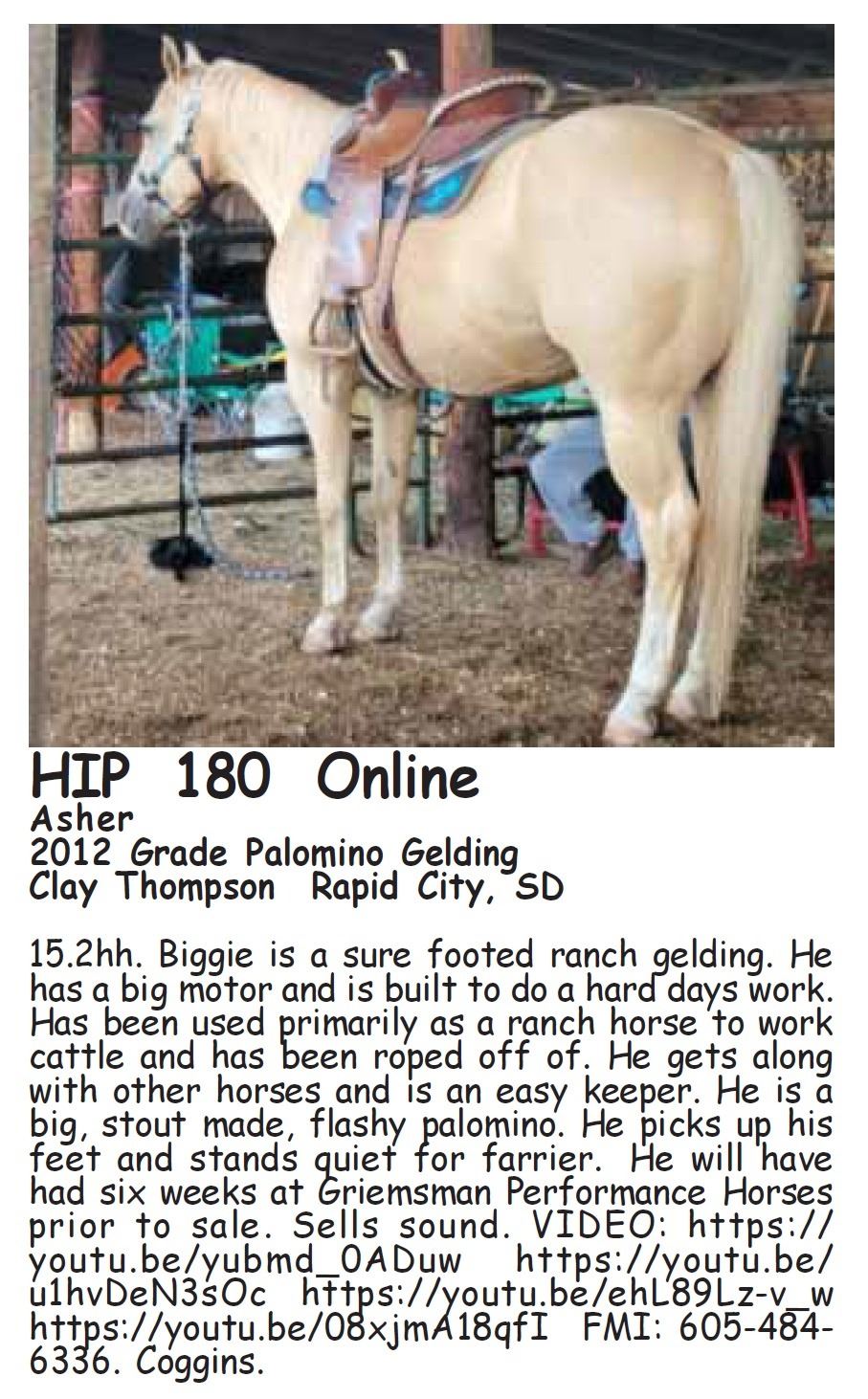 ALL OCTOBER 27-28 SALE HORSES WILL BE AUCTIONED LIVE AT BILLINGS LIVESTOCK – Internet bidding also available for Online/ ShowCase Internet Sale Session horses offered in this sale